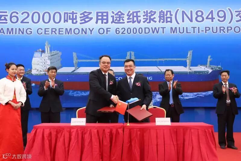 “中远海运创新”轮接船暨命名仪式在大连中远海运重工举行。“中远海运创新”轮为中远海运特运第二艘62000吨多用途纸浆船,她的入列,使特运多用途船队总载重吨达到188万吨,跃居全球第一。