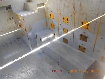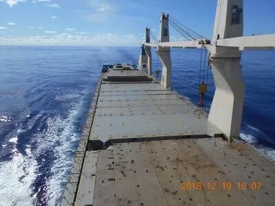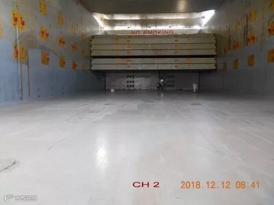 由于大吉轮以往航次有装精铜矿和镍矿的经历,货舱舱底到舱口围舱壁残留较多的矿渣。船长、大副商议后决定冲洗后再油漆舱壁和舱底,不过由于船在航行中和在锚地时都面临较大涌浪,为了安全,舱壁油漆只覆盖到6米以下的位置,待纸浆装到2至3层时,再清洁上方的舱壁。
