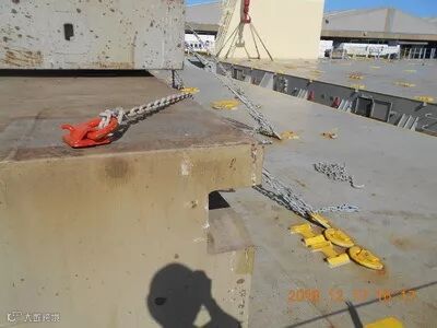 大吉轮事前把三个货舱的所有旁通和NO.2、NO.3舱的吊离式舱盖都移到安全合适的位置,大副结合装完货后的绑扎方案,在现场仔细核实旁通位置。