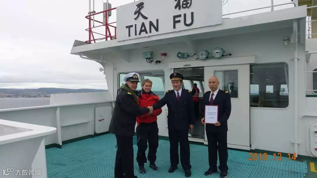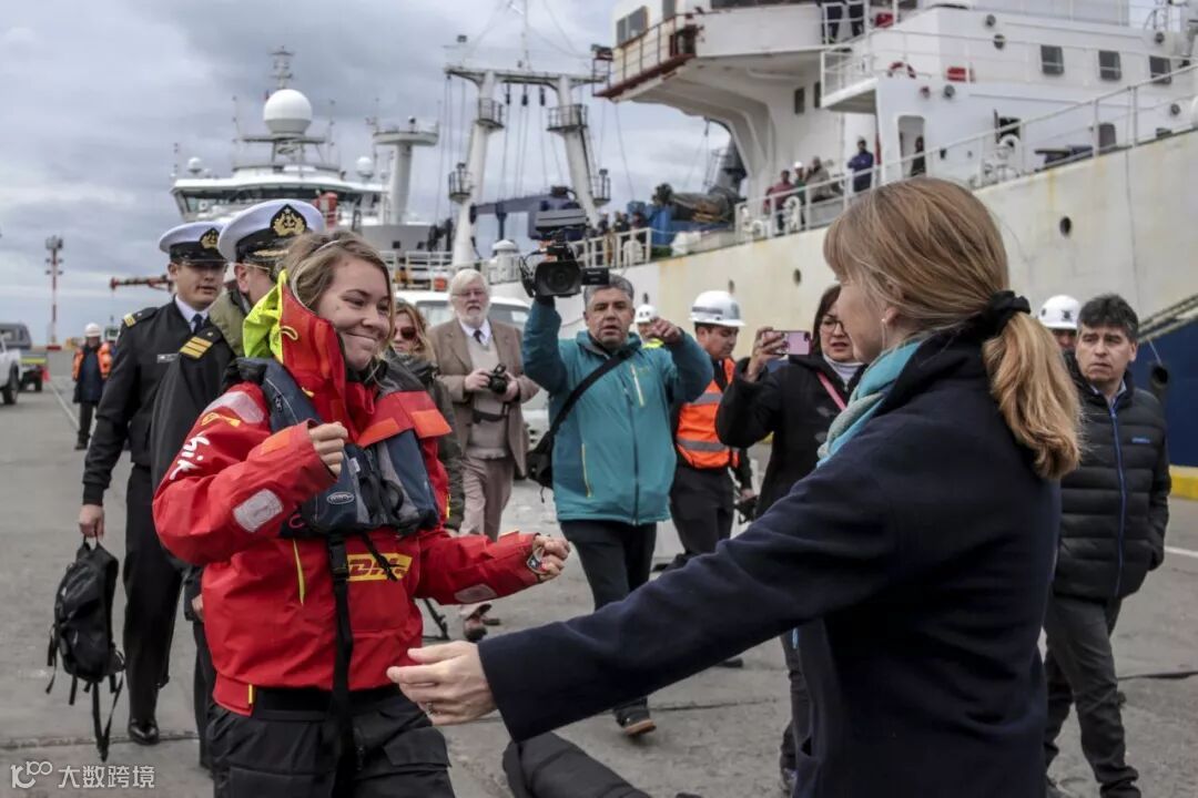 当地时间12月14日8日45分,英国女帆船手Susie Goodall乘坐中远海运特运货船天福轮顺利抵达智利蓬塔阿雷纳斯引航站,在两名官员的接送下离开天福轮登上智利海军军舰。天福轮圆满完成救助任务。