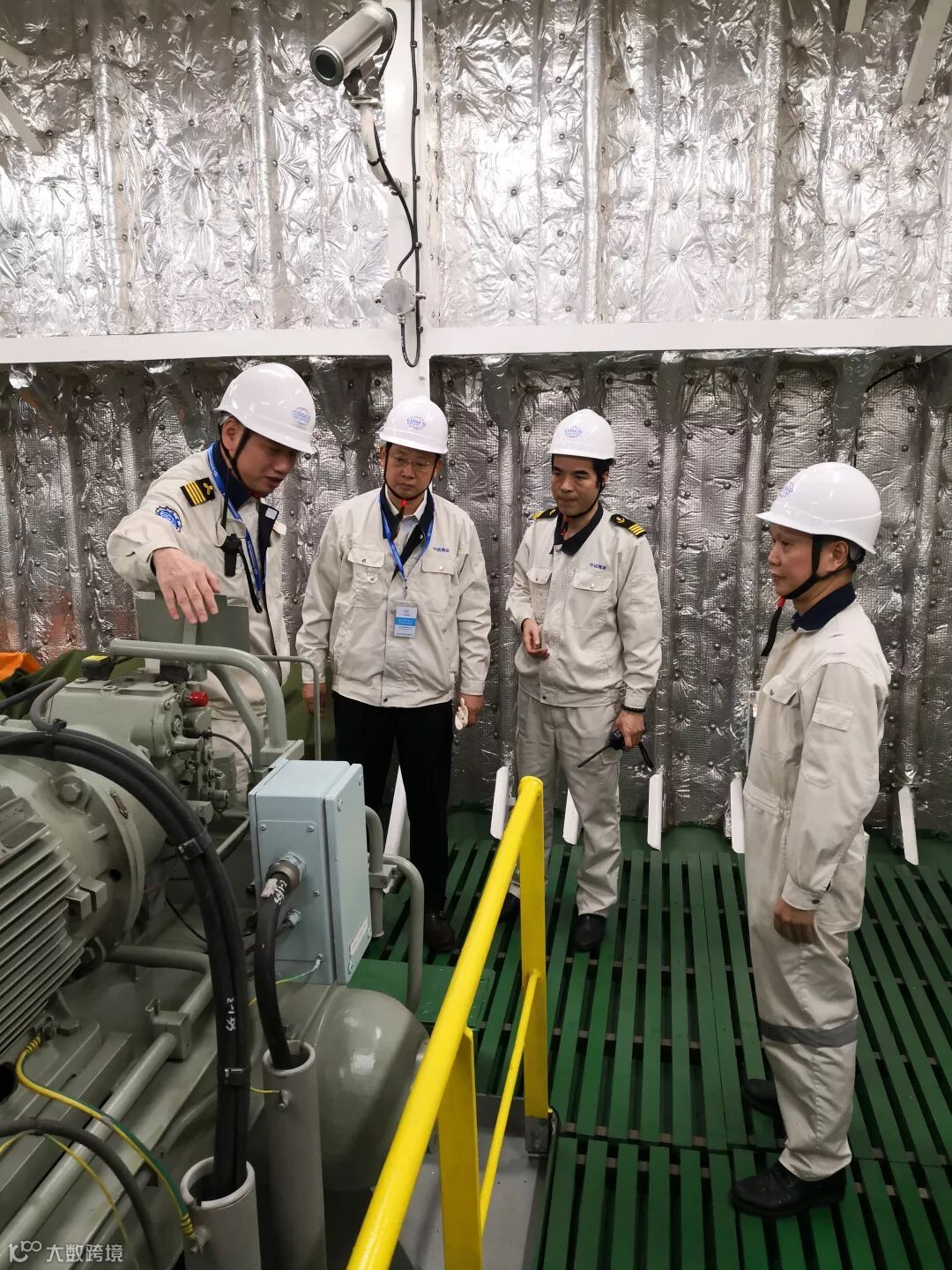 15日上午,陈总登上靠泊青岛港卸货的天恩轮慰问调研,祝贺该轮胜利完成北极航行任务凯旋归来,对全体船员弟兄致以亲切问候。陈总细致考察了船舶机舱、驾驶台以及卸货作业、码头堆存等情况,对该轮的船风船貌表示充分肯定。
