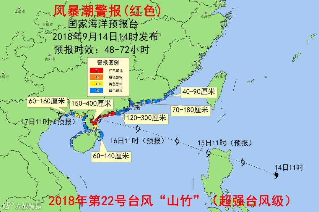 国家海洋预报台就此次台风“山竹”(超强台风级)的