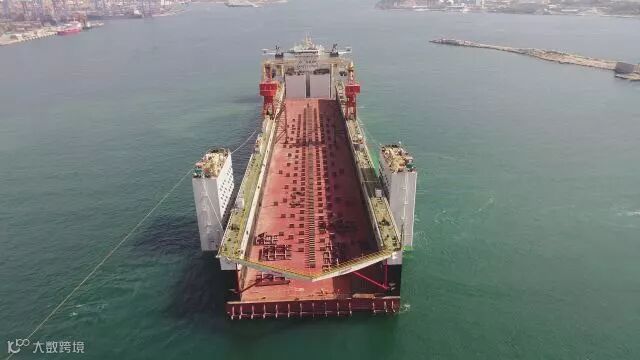 ★由于船舶无法随风转向,整个卸货过程中,新光华轮一直右舷受风,浮船坞一直往船舶左舷压,不断逼近左浮箱。面对不利局面,公司半潜船团队立即稳住,放慢速度,不断通过缆绳调整和拖轮协助牢牢地控制住船舶与货物的相对位置,确保作业安全。