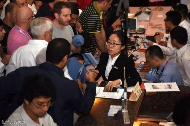 ▲宾馆大堂办证点迎来广交会首日办证高峰