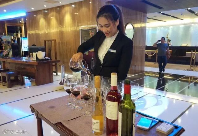 ▲大堂接待点设立了临时“移动小酒吧”,为忙碌一天的宾客递上一杯香醇浓厚的葡萄酒,保持一份美好的心情。