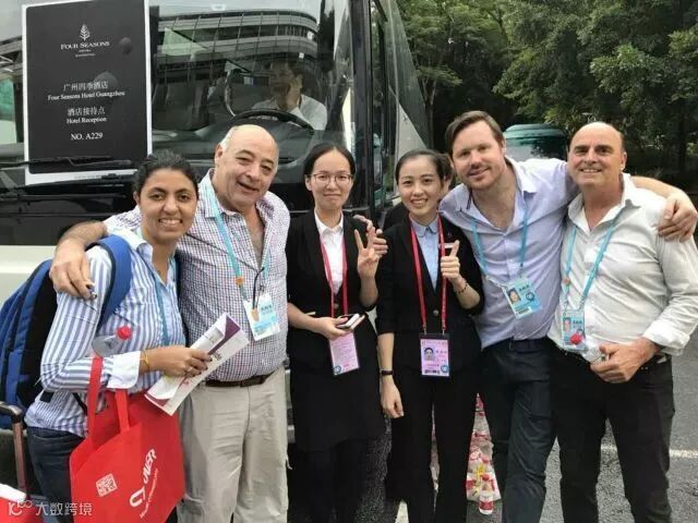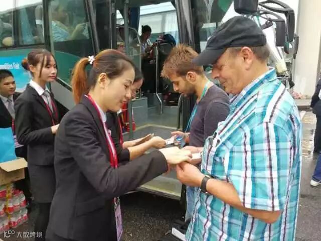▲广交会现场,宾馆穿梭巴小组正为宾客认真做好指引、搬行李、派发水、小点心等贴心服务。
