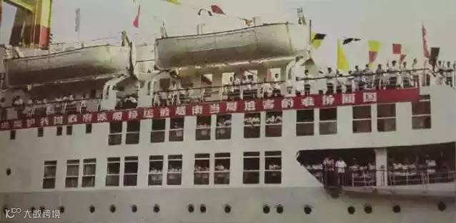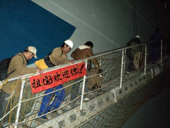 登上祖国的货轮,同胞们露出回家般的笑容。