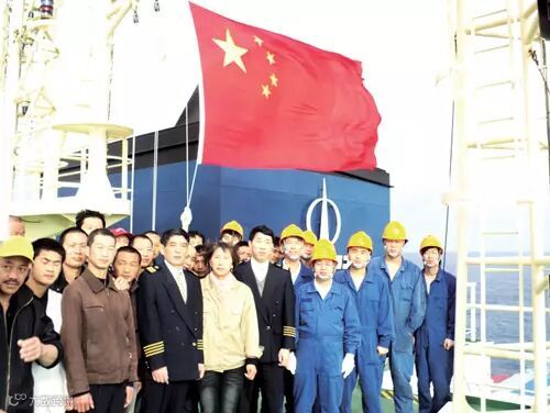 航行途中,天福河轮船员与撤离的中国公民代表一同在船上举行了升国旗仪式。