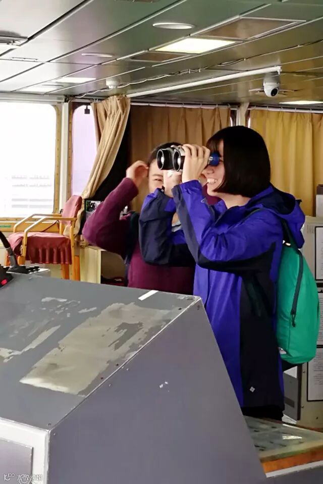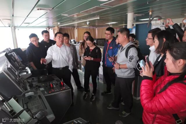 在小编的不停催促下,大家终于转到了驾驶台,张殿平船长已经在此等候多时啦。看着大家一脸渴望的表情,张船长热情地给大家逐一介绍驾驶台的各种设备仪器。