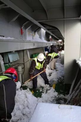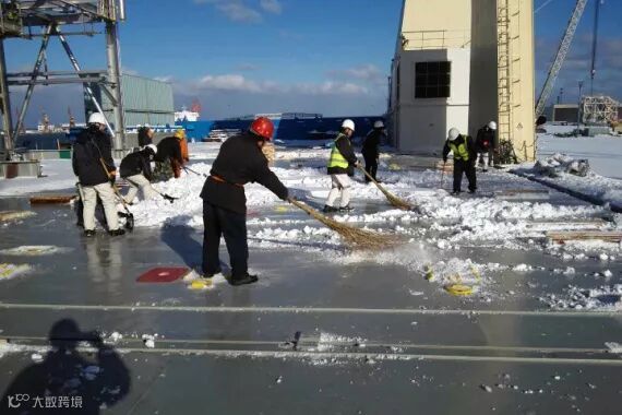 安全高于一切。每次装货前,船员们都会先将积雪及时清除干净,不留任何安全隐患。