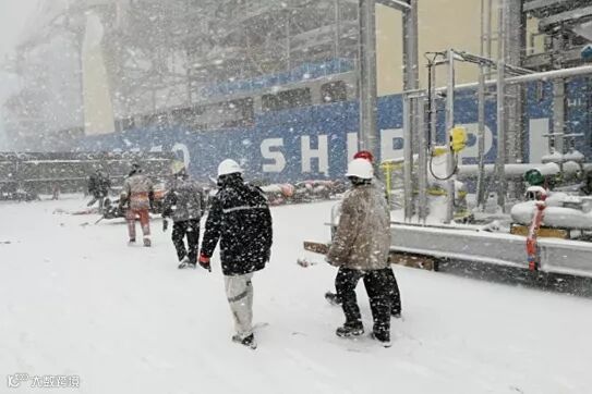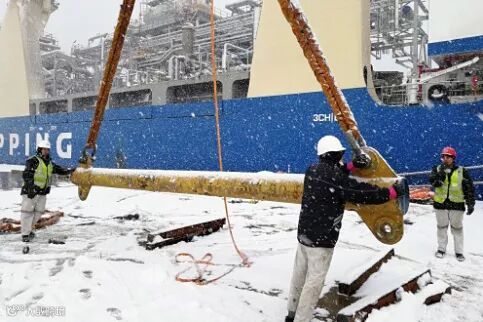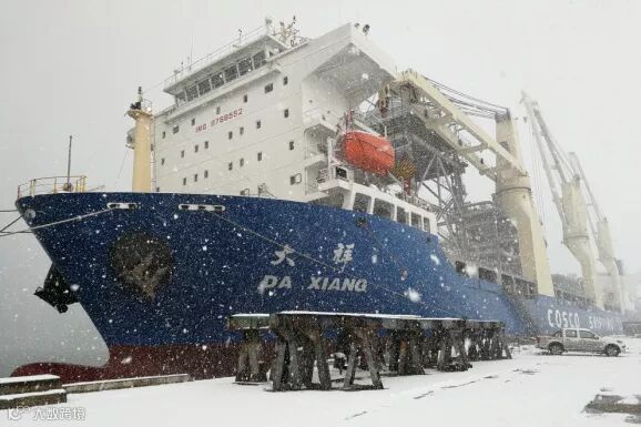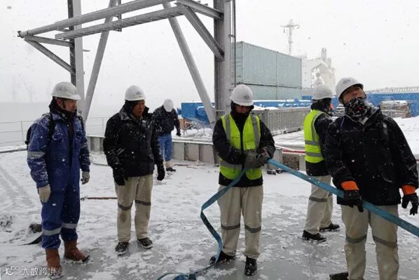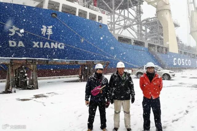 突如其来的四场大风雪同样光顾了正在蓬莱巨涛重工紧张作业的中远海运特运大祥轮。