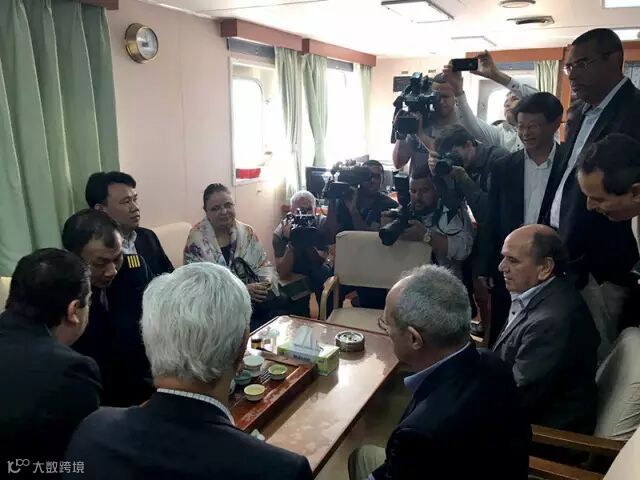 举行仪式前,巴西圣埃斯皮里图州州长保罗·阿通带领该州发展厅厅长等政府官员、媒体工作人员、侨商代表一行20余人,登上天祺轮参观,并在船上进行了座谈交流。