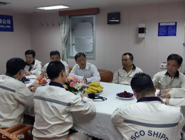 在随后与船舶领导的座谈中,韩总听取了船长、政委、轮机长的简要工作汇报,对两轮良好的船风船貌表示肯定,通报了公司近期安全生产形势和经营效益等方面的情况,介绍了集团船员体制改革的有关情况,并就下一阶段工作提出了要求。他强调,安全生产要重视四件事:全面抓、抓重点、抓短板、抓落实,船舶货运任务重,要特别重视抓好航行安全、人身安全、货物安全等关键方面,实现船舶安全营运;船舶领导要关心、关爱船员,要及时了解他们的思想动态、个人生活及家庭情况等,为他们解决实际问题,让他们安心、舒心地工作;6月是“安全生产月”,船舶要紧紧围绕活动主题,落实好公司部署,达到以日促月、以月促年的目的,为公司安全生产、经营创效作出应有的贡献。