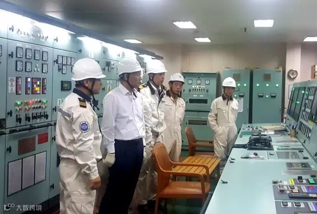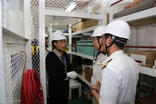 韩总一行登轮后,深入船舶机舱、甲板、驾驶台、生活区、装货区域、安全舱等作业现场细致察看,边察看边询问边现场测试,详细了解船舶运作及安全管理等方面的情况。