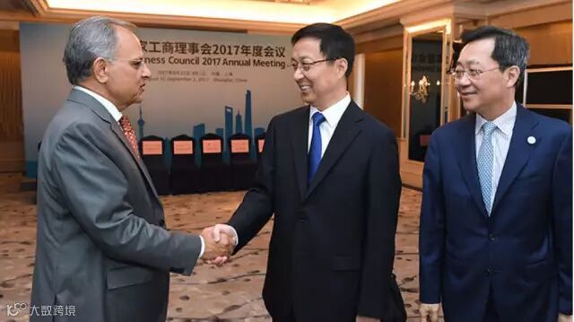中共中央政治局委员、上海市委书记韩正在会议召开前会见了金砖国家工商理事会成员。