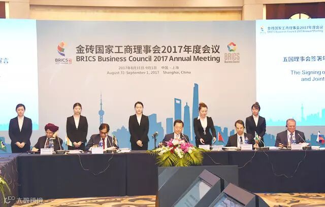 2017年8月31日至9月1日,金砖国家工商理事会2017年度会议在上海召开,来自中国、巴西、俄罗斯、印度、南非工商界,以及新开发银行、联合国工业发展组织等合作机构的共计300余名代表参加会议。