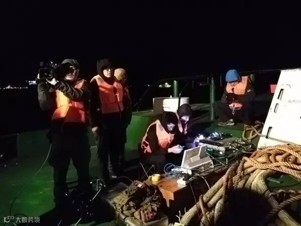 这张合影是此次直播团队在现场的合影。他们于今日凌晨抵达锚地后,马上调试卫星信号。