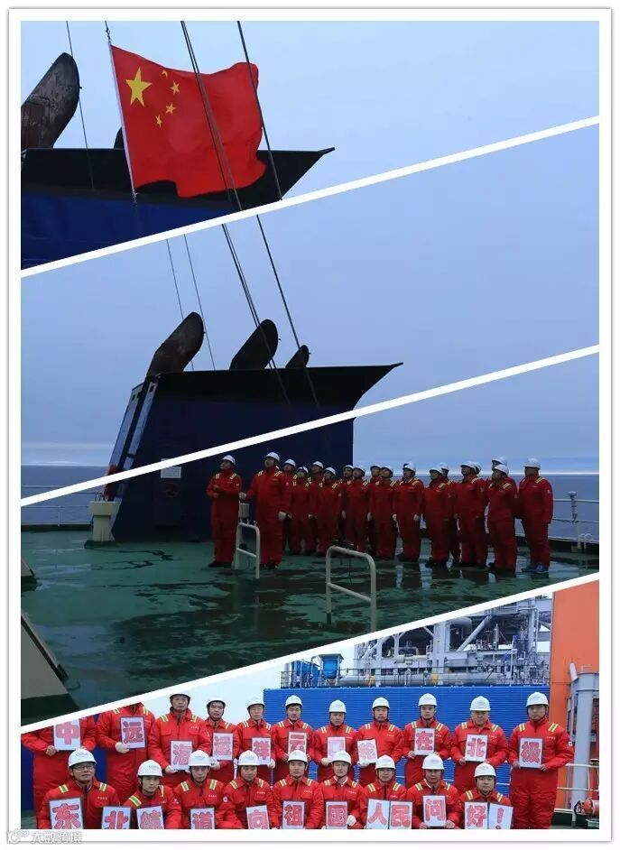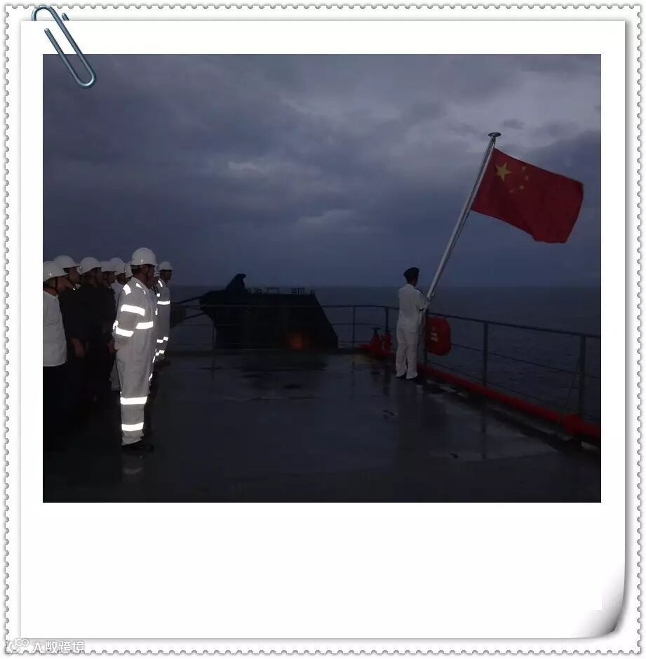 我轮正航行于渤海湾,为庆祝伟大祖国67周年华诞,船员们迎着晨曦,举行了简单而热烈的升旗仪式。早上8时,全船人员统一着装来到驾驶台顶端,船长首先简要回顾了伟大祖国67年来走过的光辉历程,政委挑选三副作为升旗手并进行培训,大家整齐列队注目国旗,在国歌声中国旗冉冉升起。随后全体船员在政委的指挥下齐唱《歌唱祖国》。望着迎风飘扬的国旗,大家心中充满了自豪。伟大的祖国为我们创造了美好的时代,作为远洋船员,我们一定要紧跟时代步伐,为实现海洋强国梦、中国梦而努力工作。
