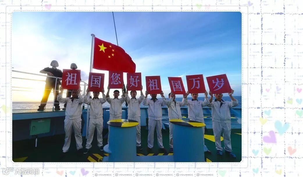 旭日东升,喷薄万里。2016年10月1日,中远航运大泰轮在印度洋上迎来了祖国67周年华诞。船员们伫立船头,向着祖国的方向,升旗,奏乐,齐声高呼“祖国您好,祖国万岁”!