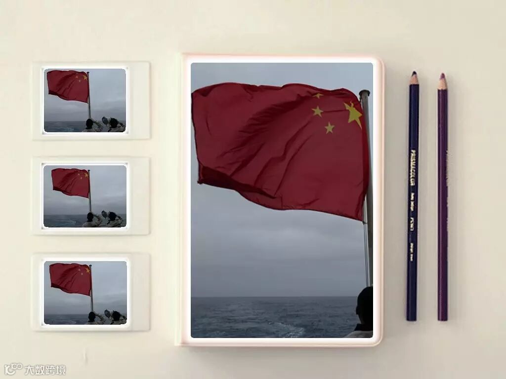 在神圣的浮动国土上升起鲜艳的五星红旗;