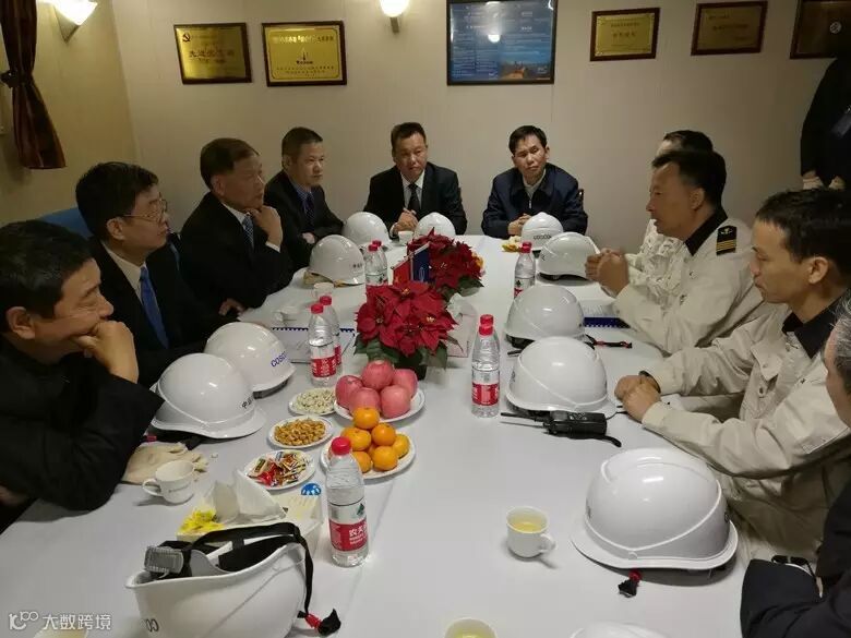 中远航运和中国电子进出口总公司领导在永盛轮听取船舶航前汇报