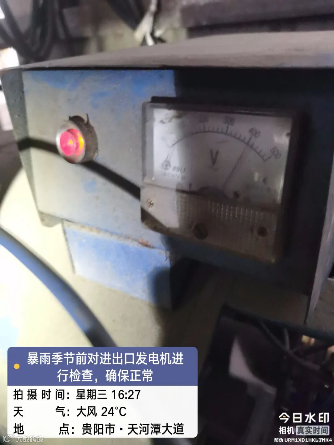 | 3月27日 水电班组为应对暴雨季节物流园区紧急断电,对园区进出口发电机进行检修维护。 |