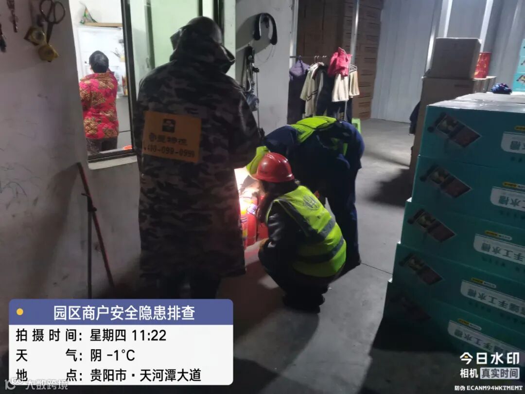 1月25日 消防部常态化夜间工作,巡查园区路面凝冻情况。抽查园区货运司机证照、排查库房易燃易爆货物、冬季取暖安全,检查园区商户人货混居“三合一”等情况。 |