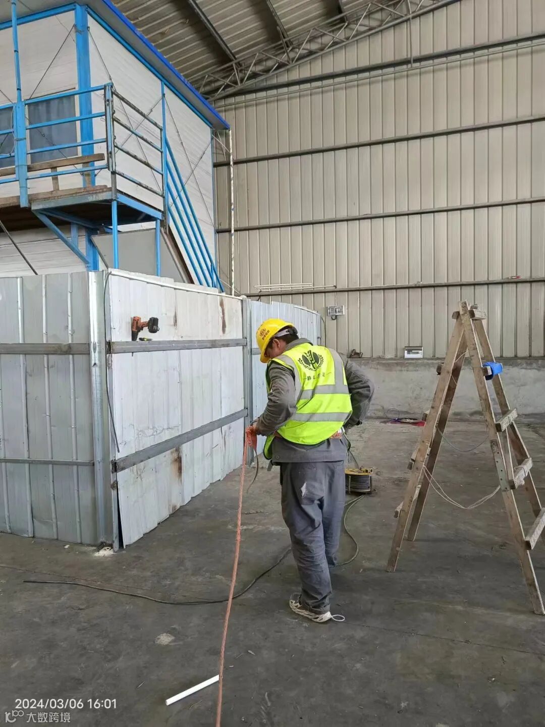 | 3月6日 水电班组对园区库房变动商户进行隔断施工作业。 |
