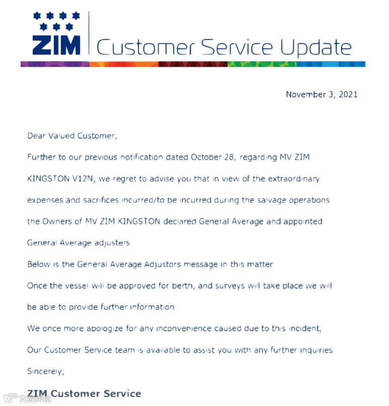 10月22日,ZIM旗下名为“ZIM KINGSTON”的集装箱船发生火灾、遭遇恶劣天气,造成109个集装箱落水。据外媒报道,12月21日,这艘运力4526TEU停靠在纳奈莫港的集装箱船在卸箱作业时又发生了火灾事故。
