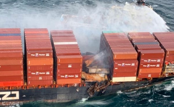 从现场的照片显示,火灾应该发生在船靠近尾附近的集装箱堆垛中,距离10月22日火灾的位置尚有一段距离。