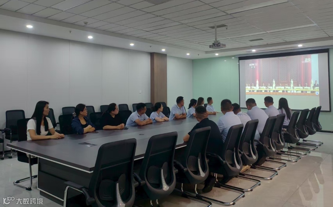 上午9时,员工及商户代表齐聚交易中心二楼大会议室,会场内气氛庄重而热烈。直播中,受阅部队在长安街整齐列阵、接受检阅的震撼场景,引发在场人员阵阵掌声与欢呼,大家深切感受着祖国的强大力量,油然而生自豪之情。