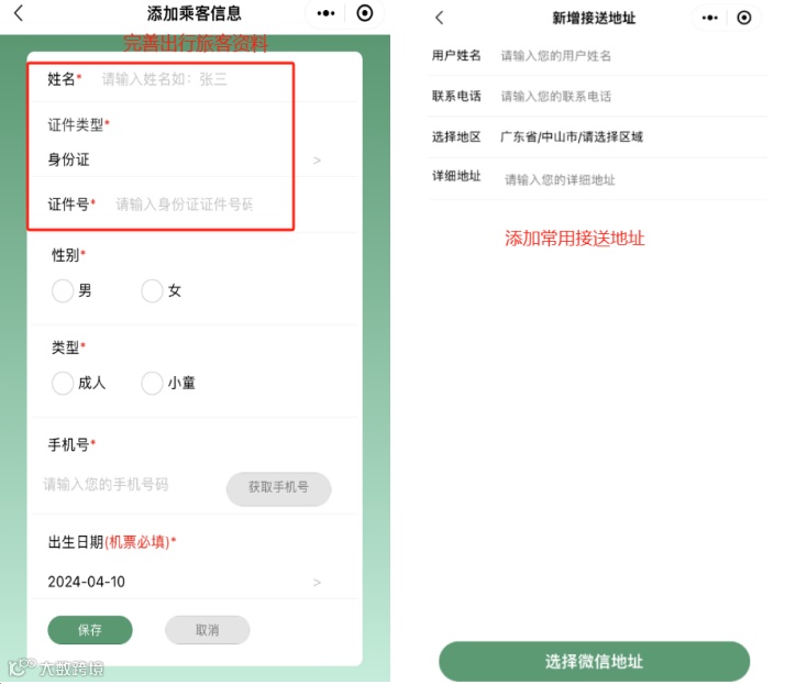 进入中山候机楼小程序-【我的】按指引完善个人资料及接送地址~