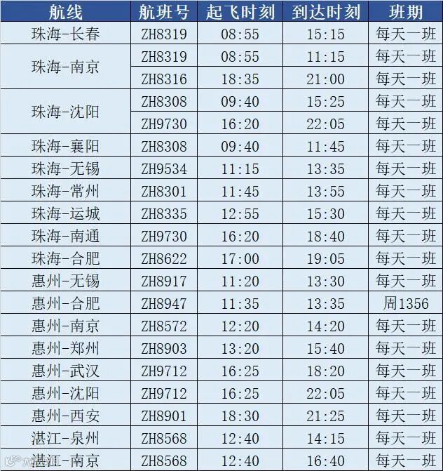 湾区换季航班一览
