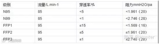 从知乎上找到一份美国N95口罩与欧盟个人防护口罩各个参数的对比图: