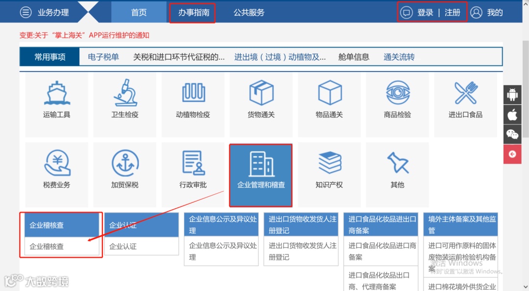 2、点击“企业管理和稽查”模块,打开左下角“企业稽核查”链接。