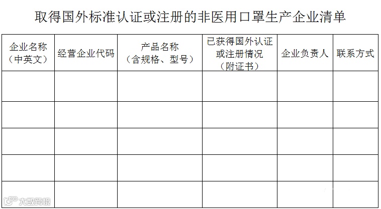 填写说明:1.填报范围仅限于获得国外认证或注册的非医用口罩;