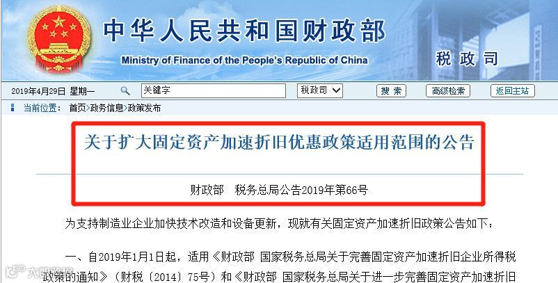 1、2019年1月1日起,固定资产加速折旧优惠的行业范围,扩大至全部制造业领域。(注意:并非所有的行业!)