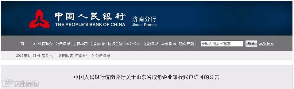 中国人民银行济南分行关于山东省取消企业银行账户许可的公告