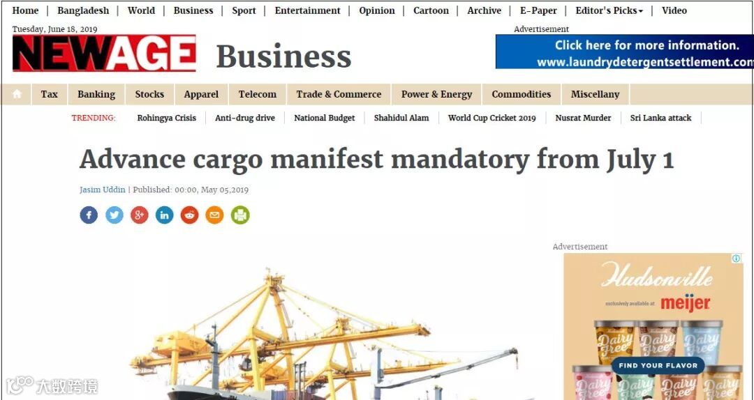 该报道指出,国家税务局将从7月1日起强制提交提前货物舱单,以促进国际贸易和快速清关进口货物。