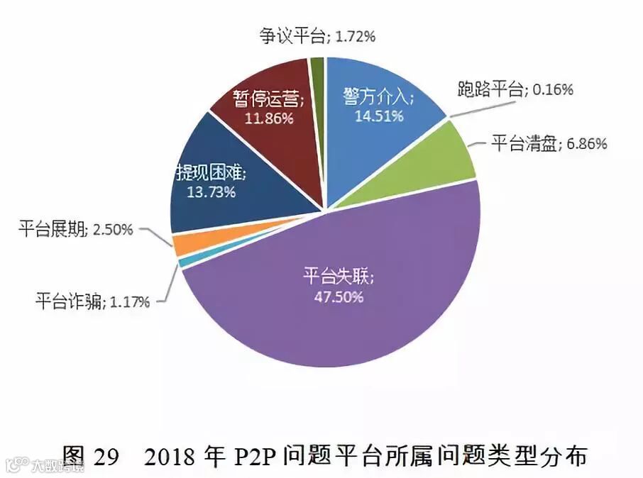 从平台产生问题的类型看,近50%的问题平台处于失联状态,14.51%的问题平台已进入警方调查程序,13.73%的问题平台出现提现困难的情况,另有11.86%的问题平台已暂停运营(见图29)。