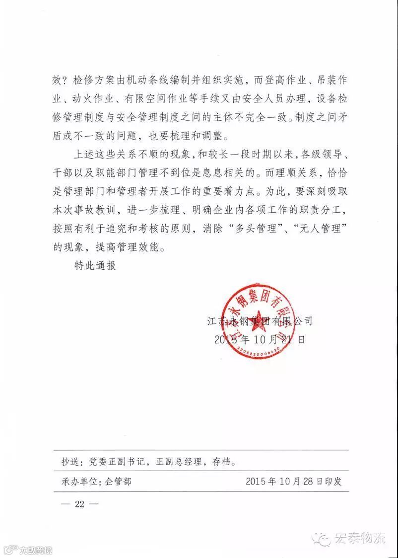 16.总经理助理蒋建国:作为企管部部长,虽然标准化班组建设在集团公司推行多年,但炼铁总厂机动条线标准缺失、《检修作业卡》内容粗疏、有限空间作业制度落实不扎实,负有领导责任。蒋建国在本次事故中承担领导责任,根据公司《生产安全事故调查处理办法》第三十五条,给予降薪10000元处理。