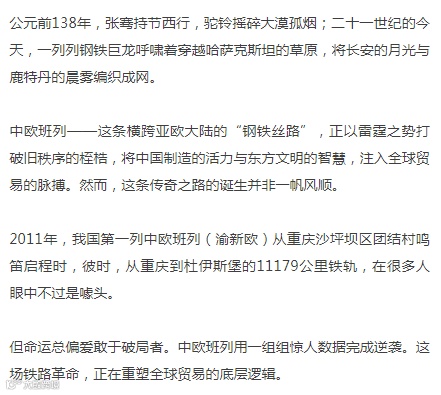 【观点解读】中欧班列,钢铁驼队托举西部复兴之路