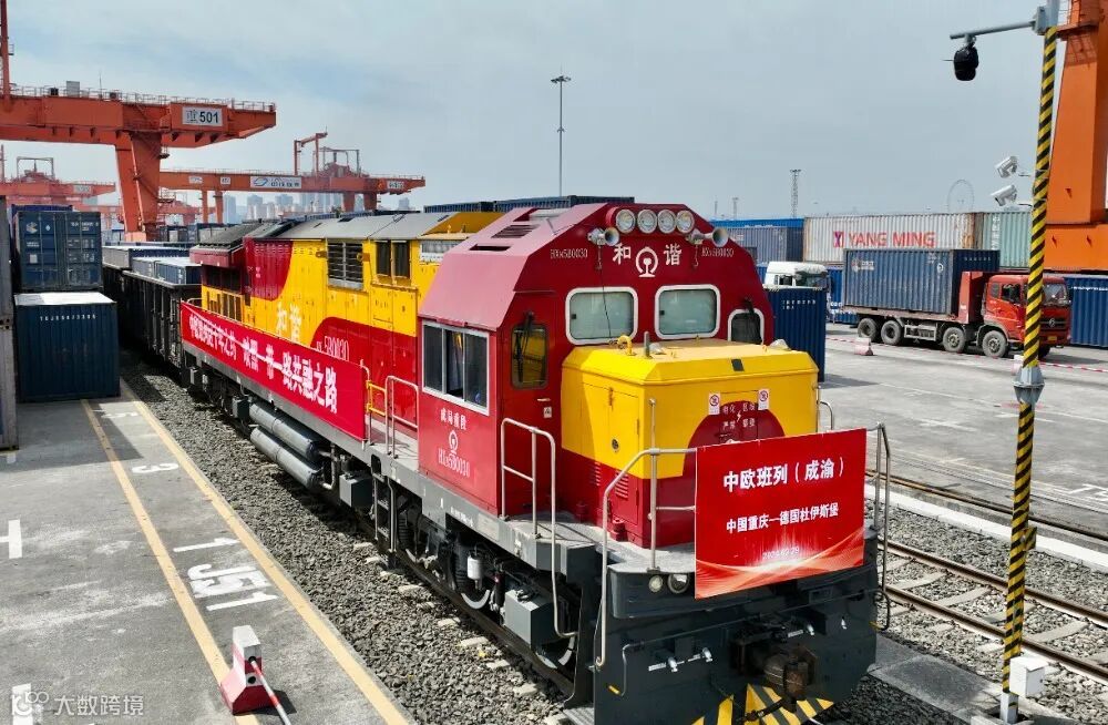 ▲2023年4月24日下午,中欧班列(渝新欧)首趟重庆江津出口班列成功开行。受访者供图