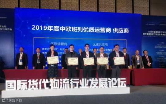 11月12日,渝新欧(重庆)物流有限公司(以下简称“我司”)在“2020年中国国际货代物流行业合作发展论坛暨2019年度中国国际货代物流行业发展蓝皮书发布会”上荣获“2019年度中欧班列优质运营商”奖项。