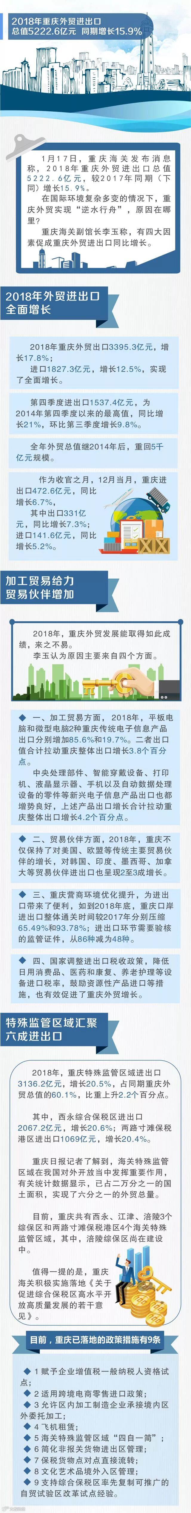 2018年,重庆外贸发展取得如此成绩,来之不易。李玉分析认为,这主要得益于良好的营商环境、重庆日渐成熟的加工贸易产业链、更加广泛的贸易伙伴、国家进出口税收政策。