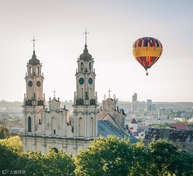 来到立陶宛,不可错过的是城市内的热气球体验,要知道在欧洲维尔纽斯是为数不多的几个可以在城市上空飞行热气球的城市。远处的电视塔。