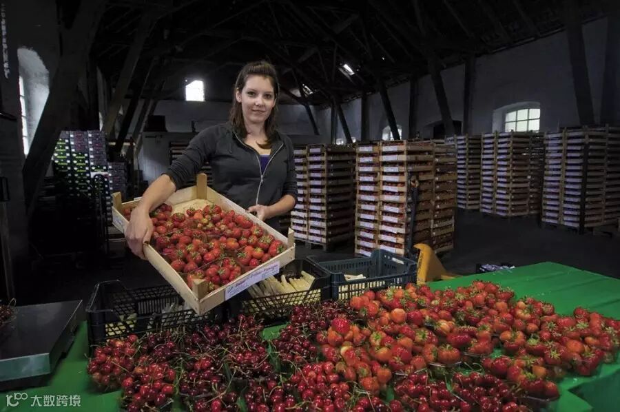 欧豪村民利用旧农舍陈售采收的草莓、樱桃和芦笋。