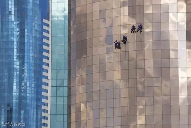 灰色的建筑工地用蓝天绿草的墙纸包围,这既体现了哈萨克斯坦人对蓝天白云的喜爱,也显示着他们对未来城市面貌的期许。