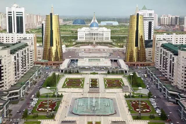 阿斯塔纳市中心,高大、雄伟的风格非常清晰,尽管这是一座年轻的城市,但是依然充满了浓厚的哈萨克斯坦气质。
