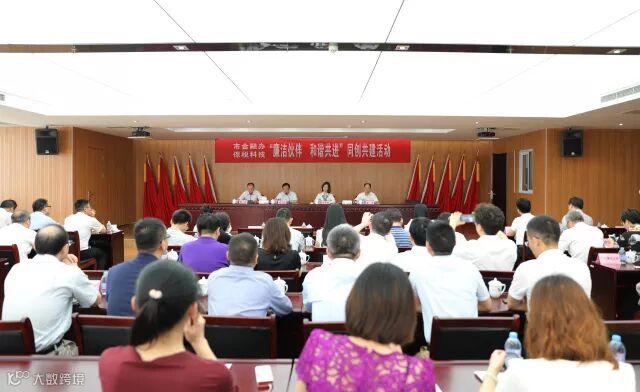 为进一步贯彻落实党的十九大精神,加强政企党风廉政建设,6月8日上午,保税科技与张家港市金融办举行了同创共建暨廉洁伙伴结对活动。市纪委常委、市委巡察办主任徐文虎,市纪委宣教室副主任王辉,市金融办主任李秋菊,保税科技党委书记、董事长唐勇等领导出席活动。市金融办、保税科技领导班子,及张家港市银行、证券公司、上市公司、新三板企业代表共50余人参加活动。